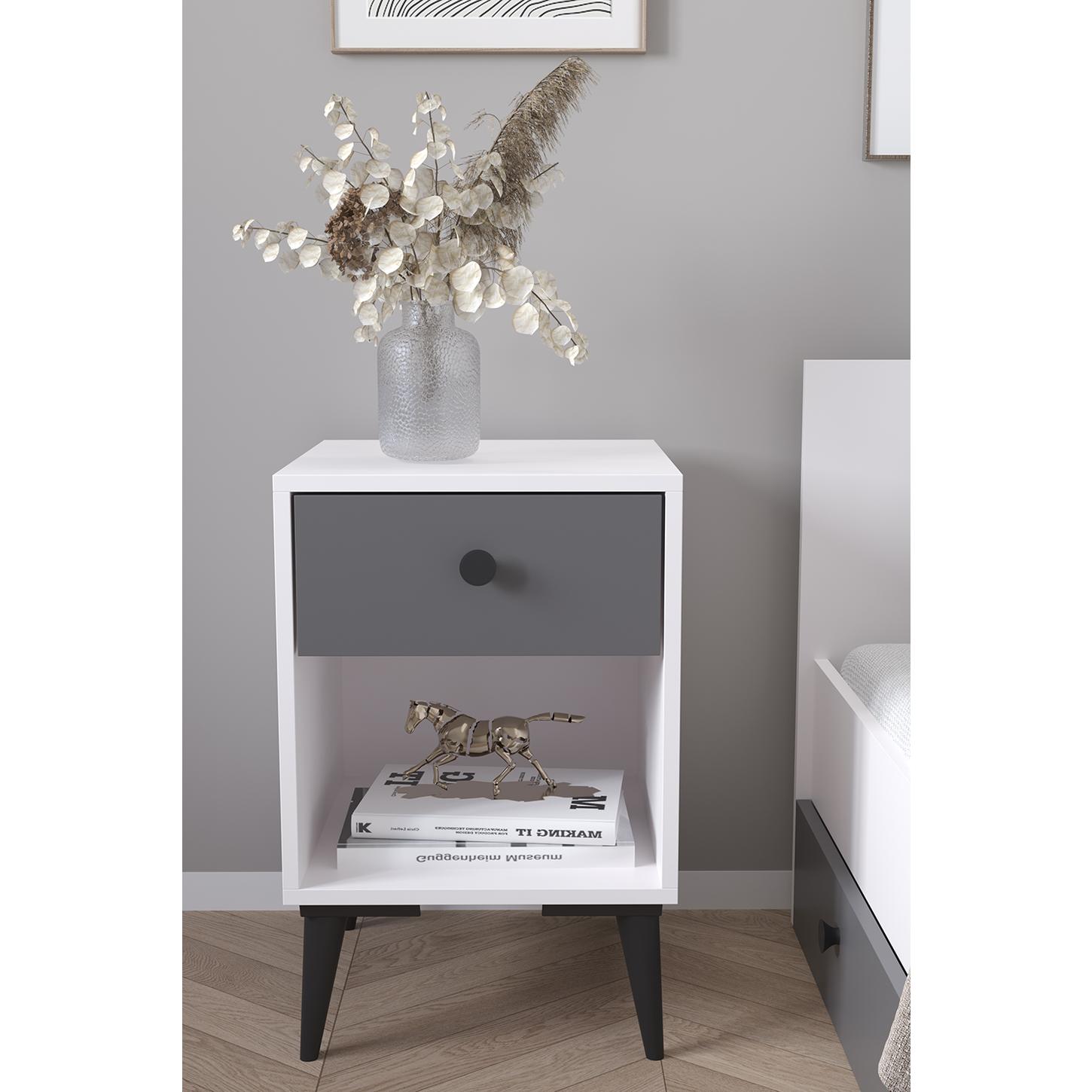 Κομοδίνο ArteLibre AMARI Λευκό/Ανθρακί Μοριοσανίδα 43x43x67.5cm