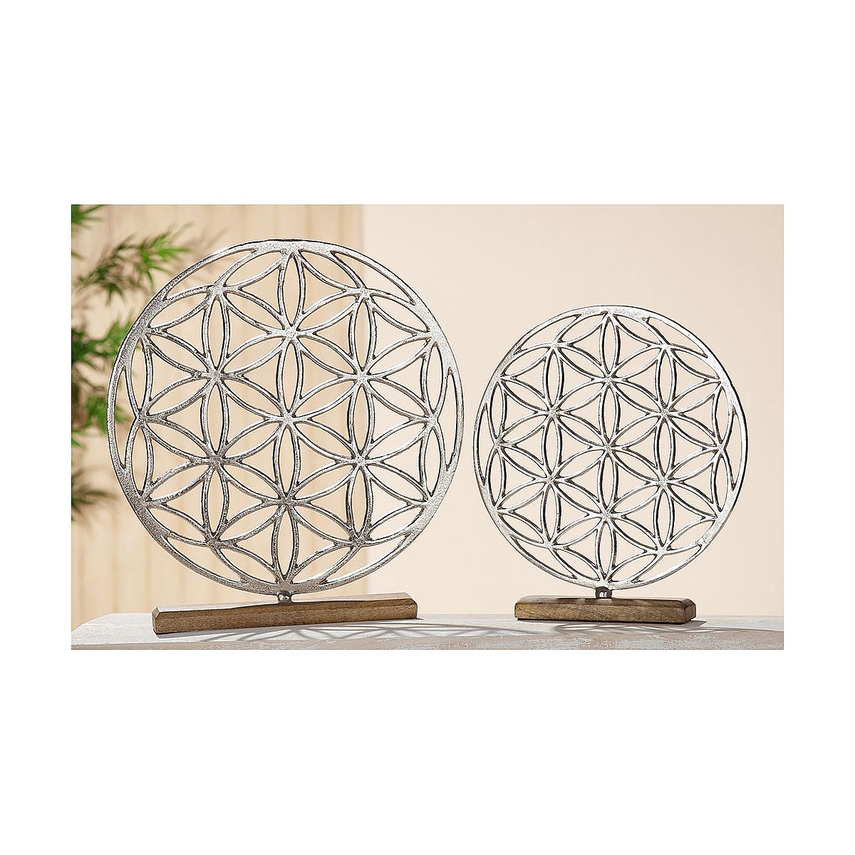 Διακοσμητικό ArteLibre Λουλούδι Σε Βάση Ασημί/Φυσικό Αλουμίνιο/Ξύλο 30x5x44.5cm