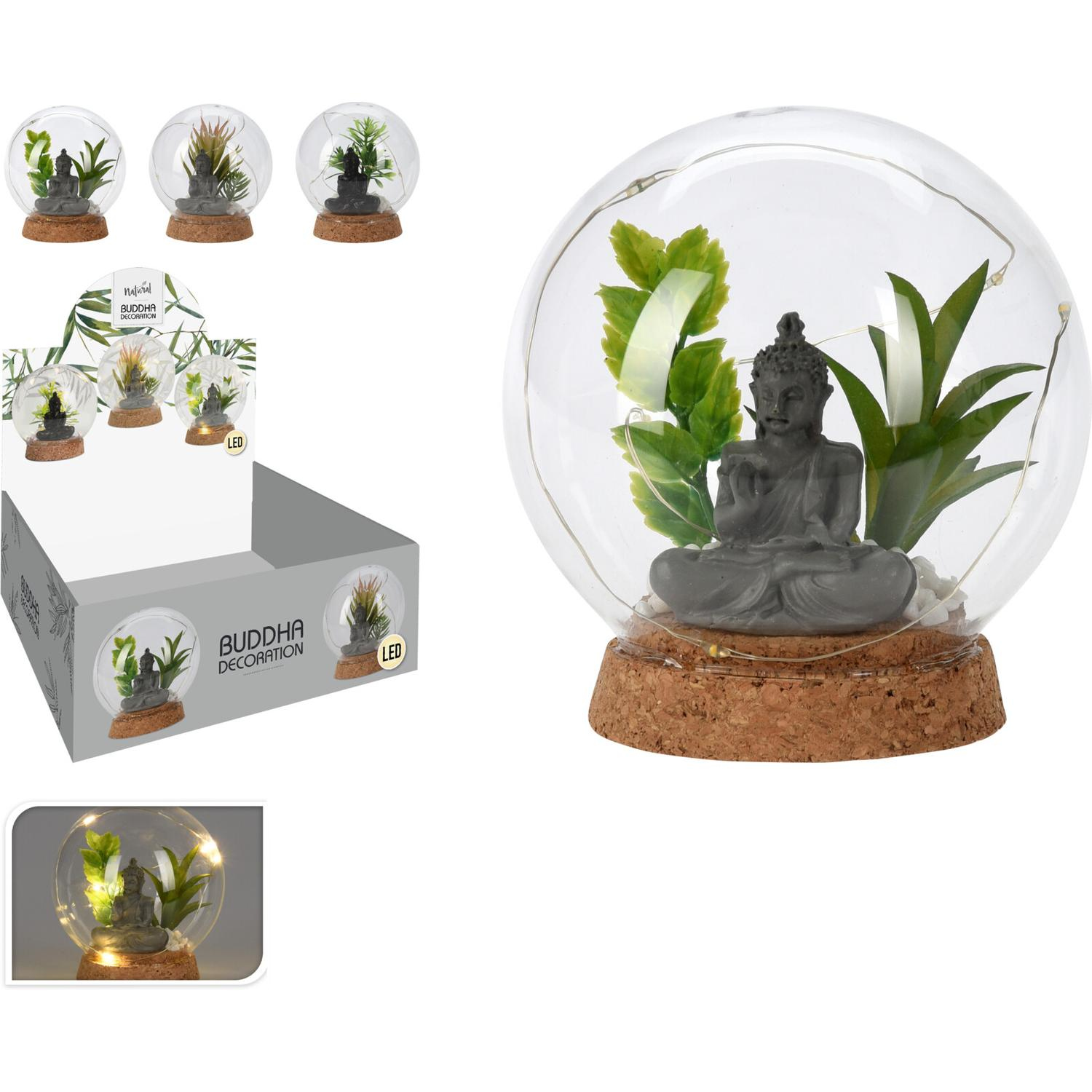 Διακοσμητικό ArteLibre Μπάλα Με Φυτό Τεχνητό Και Βούδα Και Φωτισμό LED Γυαλί Σε 3 Σχέδια