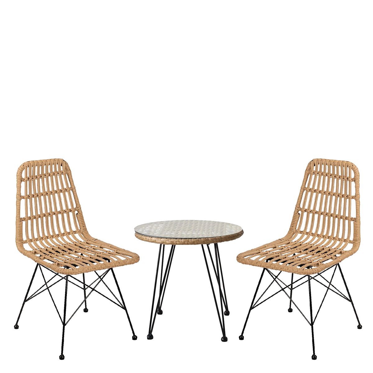 Σετ Τραπεζαρία Κήπου ArteLibre EUSEBIO Φυσικό/Μαύρο Μέταλλο/Rattan Με 2 Καρέκλες