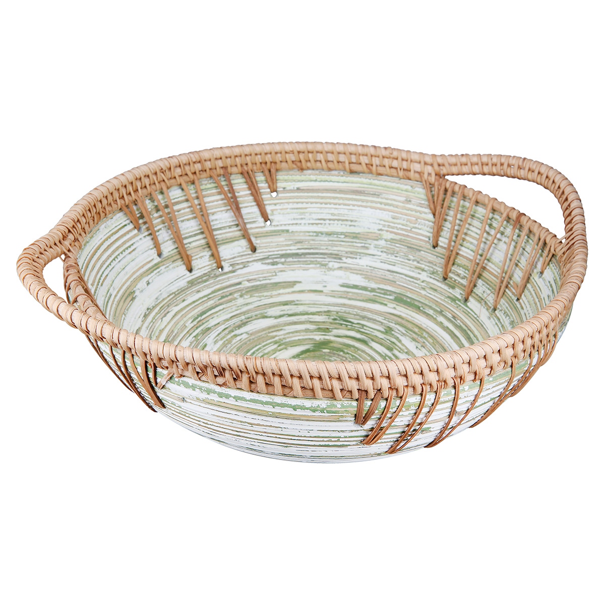 Μπωλ Στρογγυλό 'Fortaleza' Ριγέ Μπαμπού/Ρατάν Εκρού/Πράσινο 30x35.5x11cm