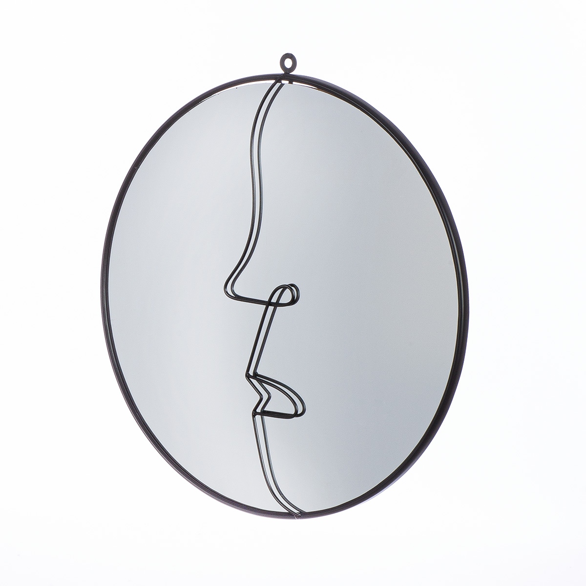 Καθρέφτης "Face" Μέταλλο Καθρέφτης Γυάλινο Μαύρο PU 2 L. 1 Cm H. 42 Cm D. 40 Cm