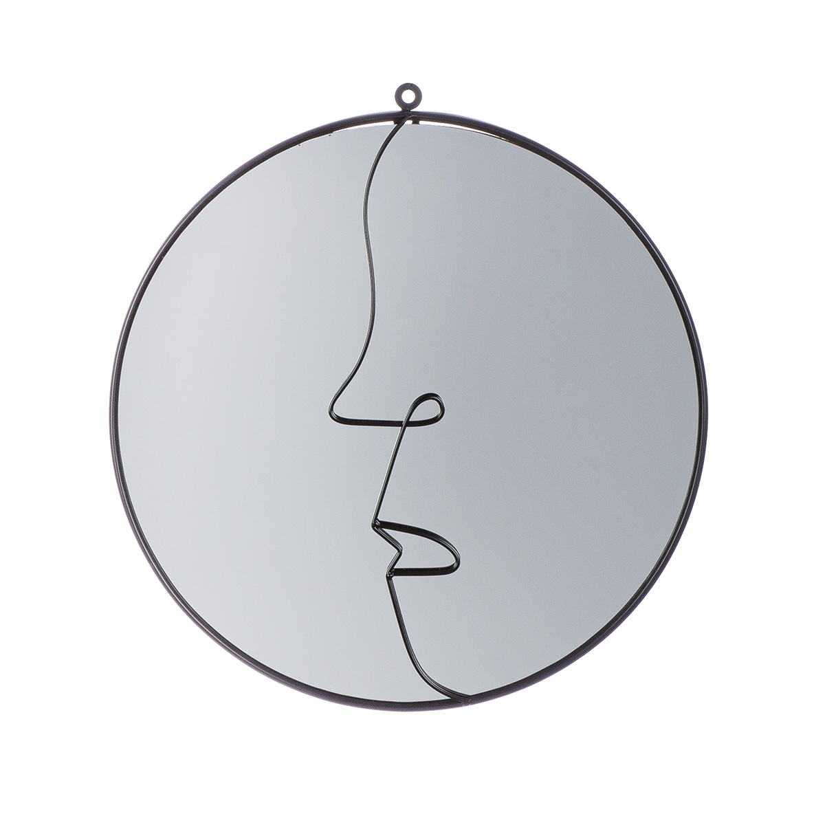 Καθρέφτης "Face" Μέταλλο Καθρέφτης Γυάλινο Μαύρο PU L. cm H. 42 cm D. 40 cm