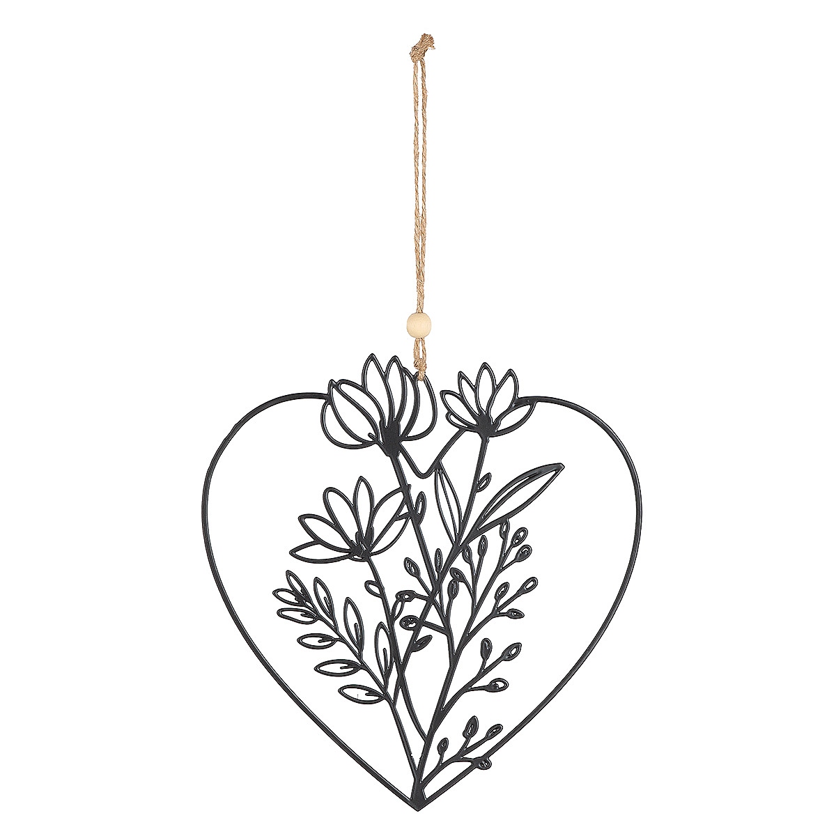 Διακοσμητικό Κρεμαστό ArteLibre Καρδιά Λουλούδια Μαύρο Μέταλλο 18.5x19cm Σε 2 Σχέδια