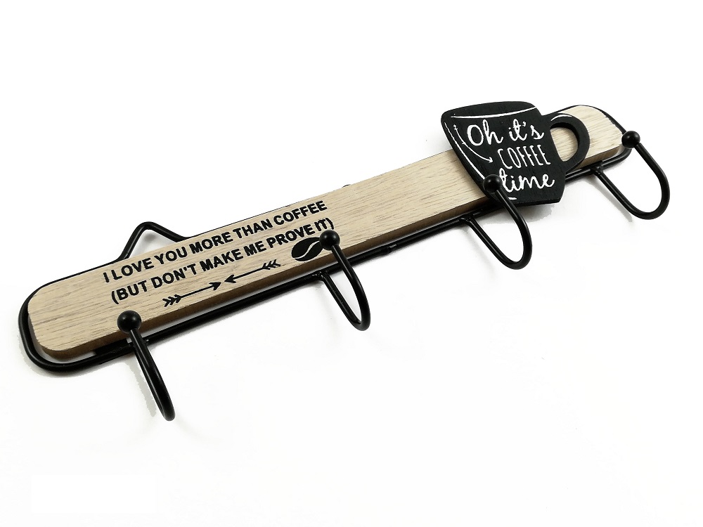 Κρεμάστρα τοίχου 'I Love You More Than Coffee' 4 θέσεων