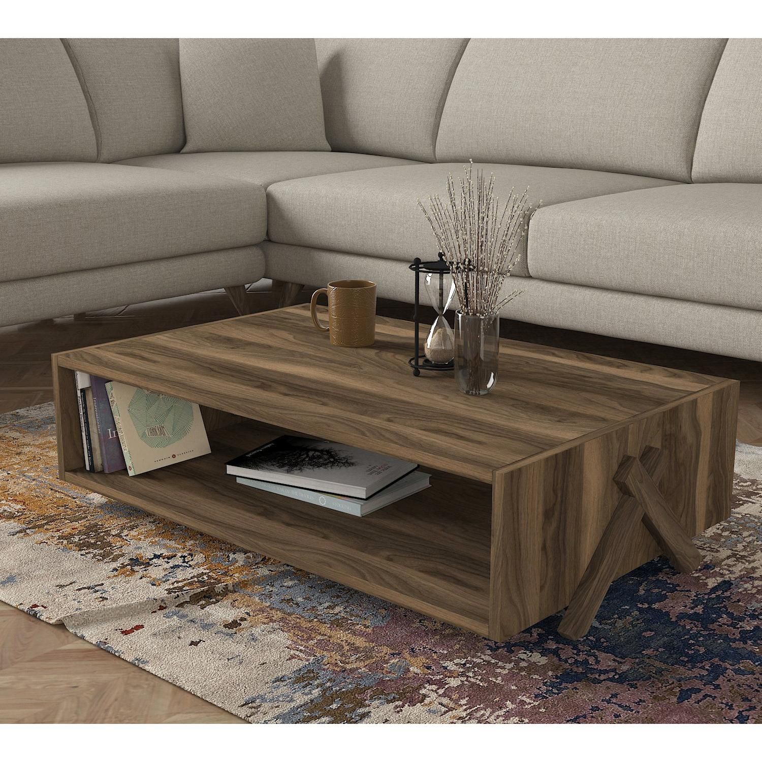 Διαθέσιμο από 2-5 ημέρεςΤραπεζάκι Σαλονιού ArteLibre Hios Λευκό/Σκούρο Καφέ Μοριοσανίδα/Μελαμίνη 100x65x47cm